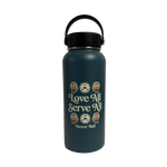 A 32 oz Wide Mouth water bottle —easy to fill, easy to drink. Open it up, add your ice, and sip. The insulated stainless steel keeps it cold for up to 24 hours.